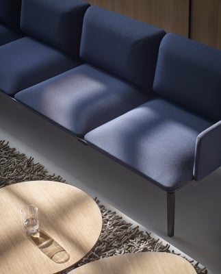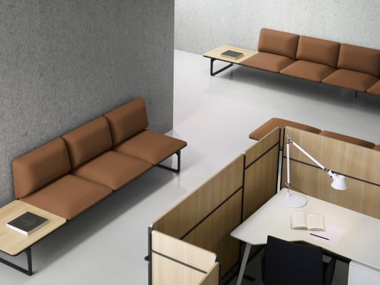 肘無しベンチやテーブルと組み合わせ、L型にレイアウトできます。 仕様について詳細はお問い合わせください。