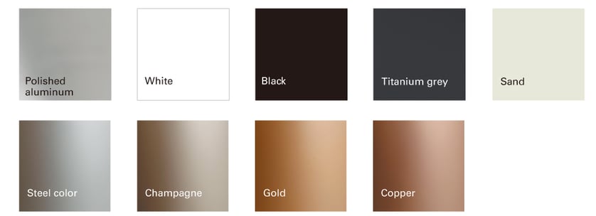 finish : フレームはアルミ5色、アップチャージでメタリック仕上げ4色