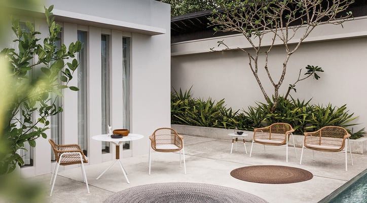 シェルは小麦色、アウトドアファブリック張りシートクッション