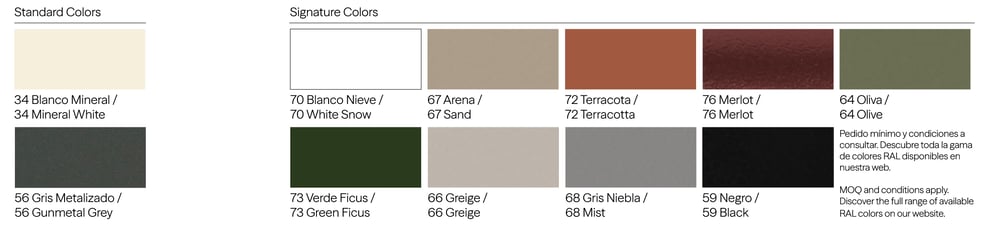 フレームはアルミにパウダーコート、オプションで他9色